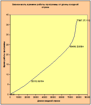 Рисунок 24. Зависимость времени работы программы от длины входной строки.