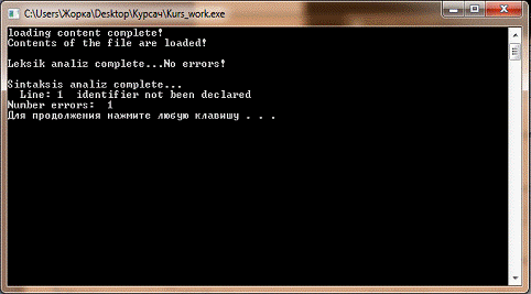 разработан синтаксический анализатор для заданного фрагмента кода. Программа
