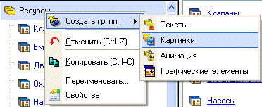 появившемся контекстном меню выбрать Создать группу, затем Графические_элементы,