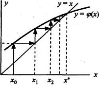 Предварительно исходное уравнение f(x) = 0 преобразуют к виду: f(х) = х,