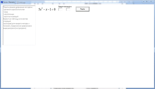 которой располагается заданное уравнение и поля для ввода промежутков (рис. 1).