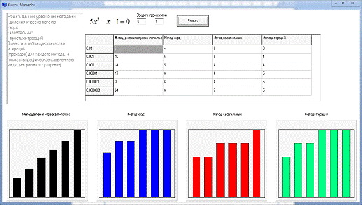 значение корня необходимой точности за 3 прохода. Наиболее медленным оказался