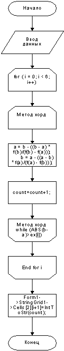 метод половинного деления. Метод хорд вычислил корень необходимой точности за 4