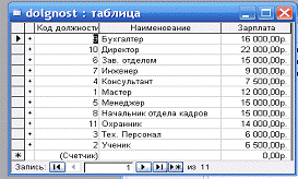 главном окне СУБД.