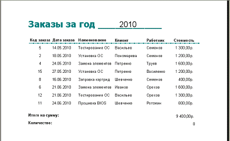 выполненных работ за указанный месяц или год всеми работниками (сгруппировать