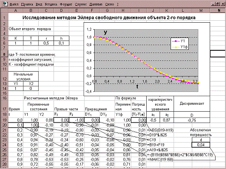 Решение дифференциальных уравнений методом Эйлера в Excel