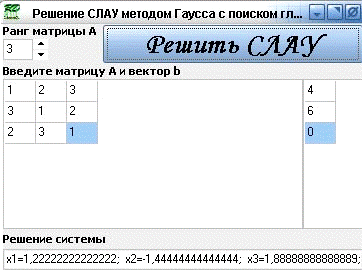 "Решение СЛАУ методом Гаусса с поиском главного элемента по строке"