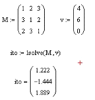 Рисунок 2 - решение СЛАУ с помощью программного пакета MathCad.