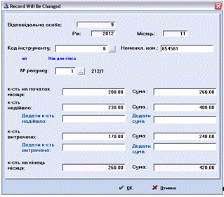 головного меню «Інструменти» та режим «Картка обліку інструментів». В одному
