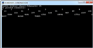 clrscr;('Vvedit kilkist chusel Fibonachi: ');(n);(n,' pershuh