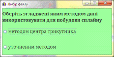 згладжених даних, робота організована в діалоговому режимі. Робота з запропонованим програмним
