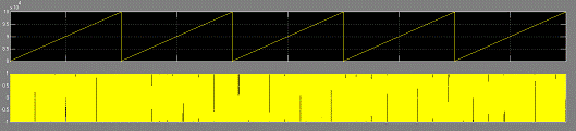пилообразных импульсов частотой 9кГц и изменяющегося во времени синусообразного