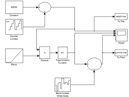 сигнал и смесь сигнала в файлы, для этого воспользуемся блоком «To File», модель показана на