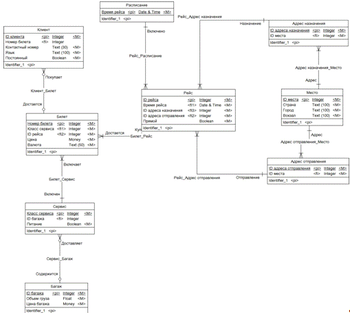 Самолет, клиент, билет, расписание рейса, авиакомпания и др.