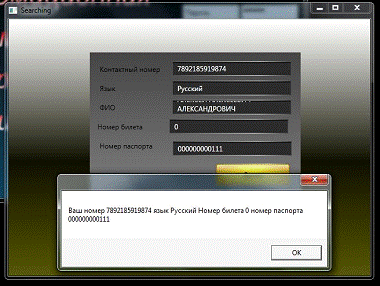 +"язык {1} " +"Номер билета {2} " +"номер паспорта
