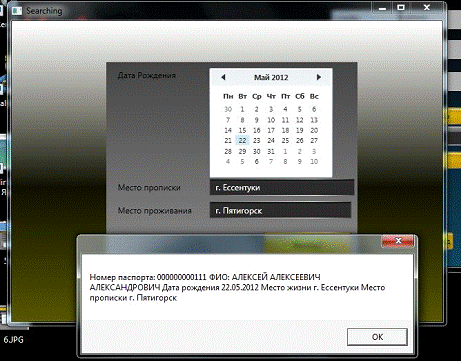 {3} " +"Место прописки {4} ",pasportID, fiomiliya, dt, mestopro,