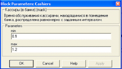 распределено равномерно на интервале 0,1-1,2 мин. Проимитируйте работу банка за