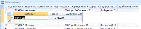 Рисунок 4.8 Вывод данных по запросу Товар/производитель