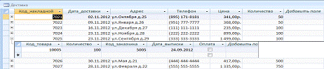 Текст запроса SQL:Доставка. Код_накладной, Доставка.