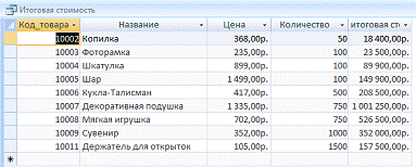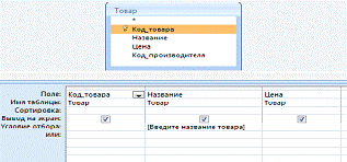 ЦенаТовар( ( (Товар. Название) = [Введите название товара])).