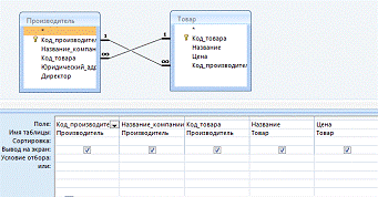 Рисунок 4.7 Конструктор запроса Товар/производитель