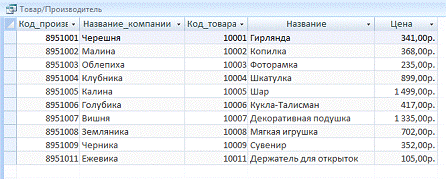 Производитель. Код_товара) AND (Производитель. Код_производителя = Товар.