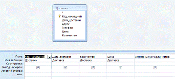 Дата_доставки, Доставка. Количество, Доставка. Цена, [Цена] * [Количество] AS