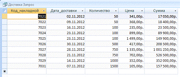 Рисунок 4.12 Вывод данных по запросу Доставка