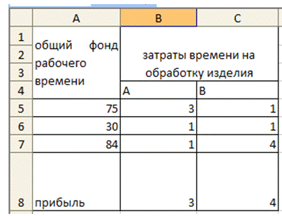 развернутую математическую модель и заносится в рабочий лист MS Excel.