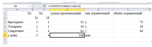 Ответ: max Z(Х)= 3*12 + 4*18 = 108