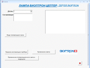 При использовании на главной форме логотипа "Bioptron" на экране