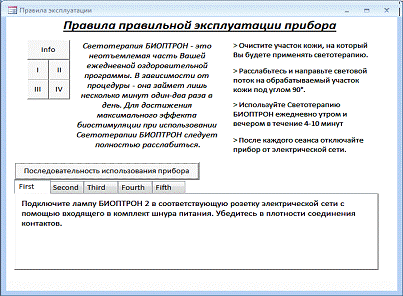 При нажатии кнопки "Правила эксплуатации прибора"