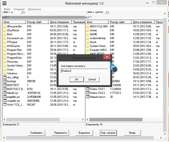 байт';:=columns.Add;.Caption:='Дата створення';:=columns.Add;.Caption:='Прихований';:=columns.Add;.Caption:='Системний';i:=0