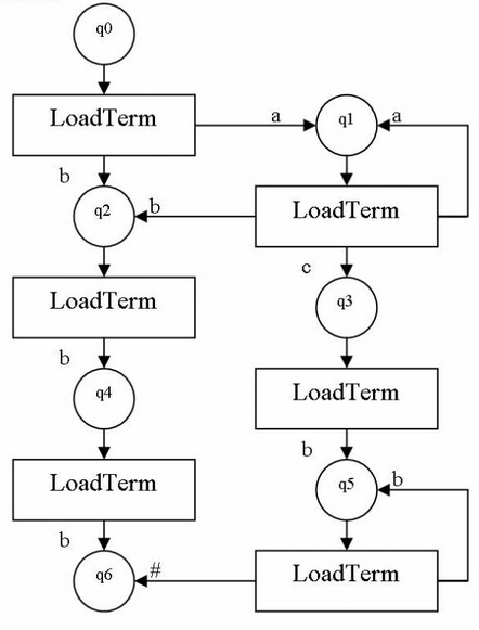 q2b>q4 | q3b>q5 | q4b>q6 | q5b>q5 | q5#>q6},-множество переходов;,-начальное состояние;}-конечное состояние.