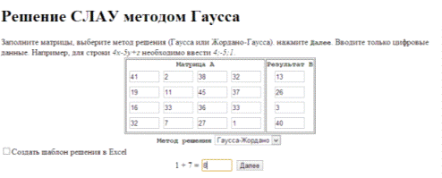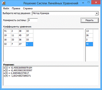 (метод Крамера, метод Гаусса, матричный метод, метод итераций и т.д.). Для