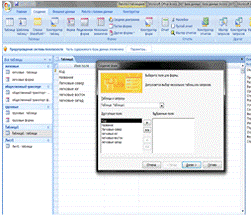 таблиц из которых будет загружена информация, в нижней части указать поля и
