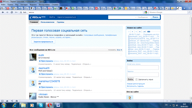 предоставление возможностей записи голосовых сообщений на популярных социальных