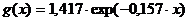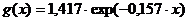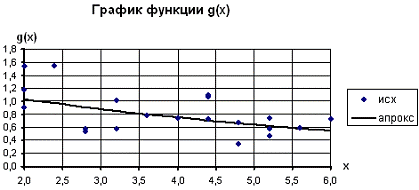 график функции g(x) с нанесенными на нем точками экспериментальных