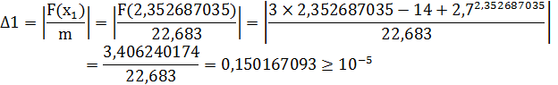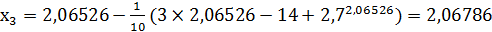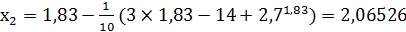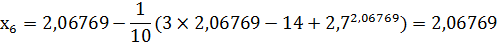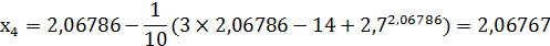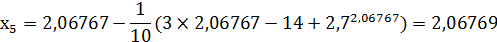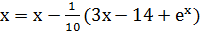 x1:=x0-(3*x0-14+exp(x0))/10;:=ABS(x1-x0);:=x1;c<=Eps;