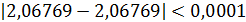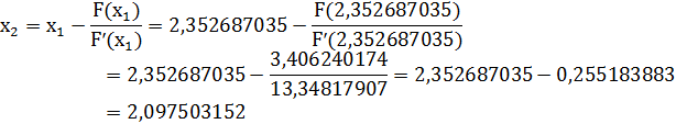 х=2,06769. Расхождение между корнями имеет не значительное расхождение, что