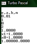 writeln('x1=',x:5:4); x0:=x1;('x0=',x0:5:4);