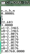 else x0:=a;(x1:5:4);x1:=x0-F(x0)/F1(x0);