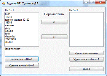 //Кнопка переноса выделенных элементов из ListBox1 в ListBox2