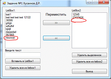 //Кнопка переноса выделенных элементов из ListBox2 в ListBox1