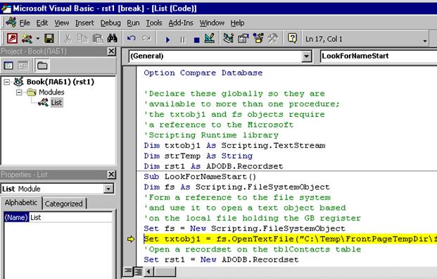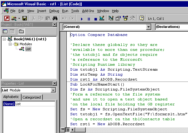 процедуры. Под уровнем модуля подразумевается часть формы General и стандартный