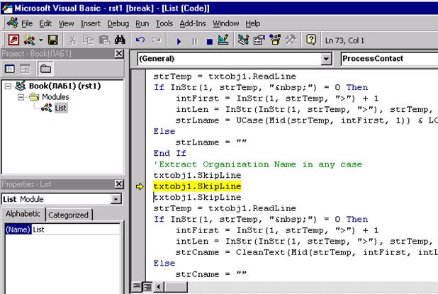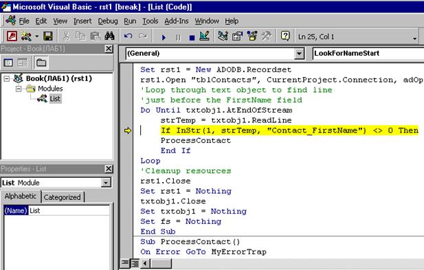 данных и в модуле Visual Basic набрать и отладить код программ, которые бы