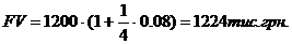 Розрахуйте нарощену суму з вихідної суми PV=1200 тис. грн.