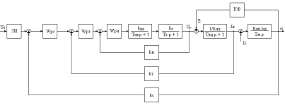 параметров: внутренний контур напряжения с ИП-регулятором, контур тока якоря с
