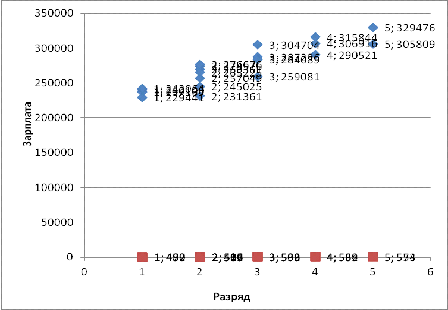 характеризующие зависимость между разрядом и заработной платой рабочих.