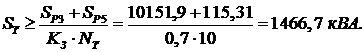 нагрузка предприятия, на основании чего осуществлен выбор трансформаторов